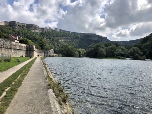 Zwei Velopolizisten begleiteten mich noch bis zum Veloweg am Doubs.